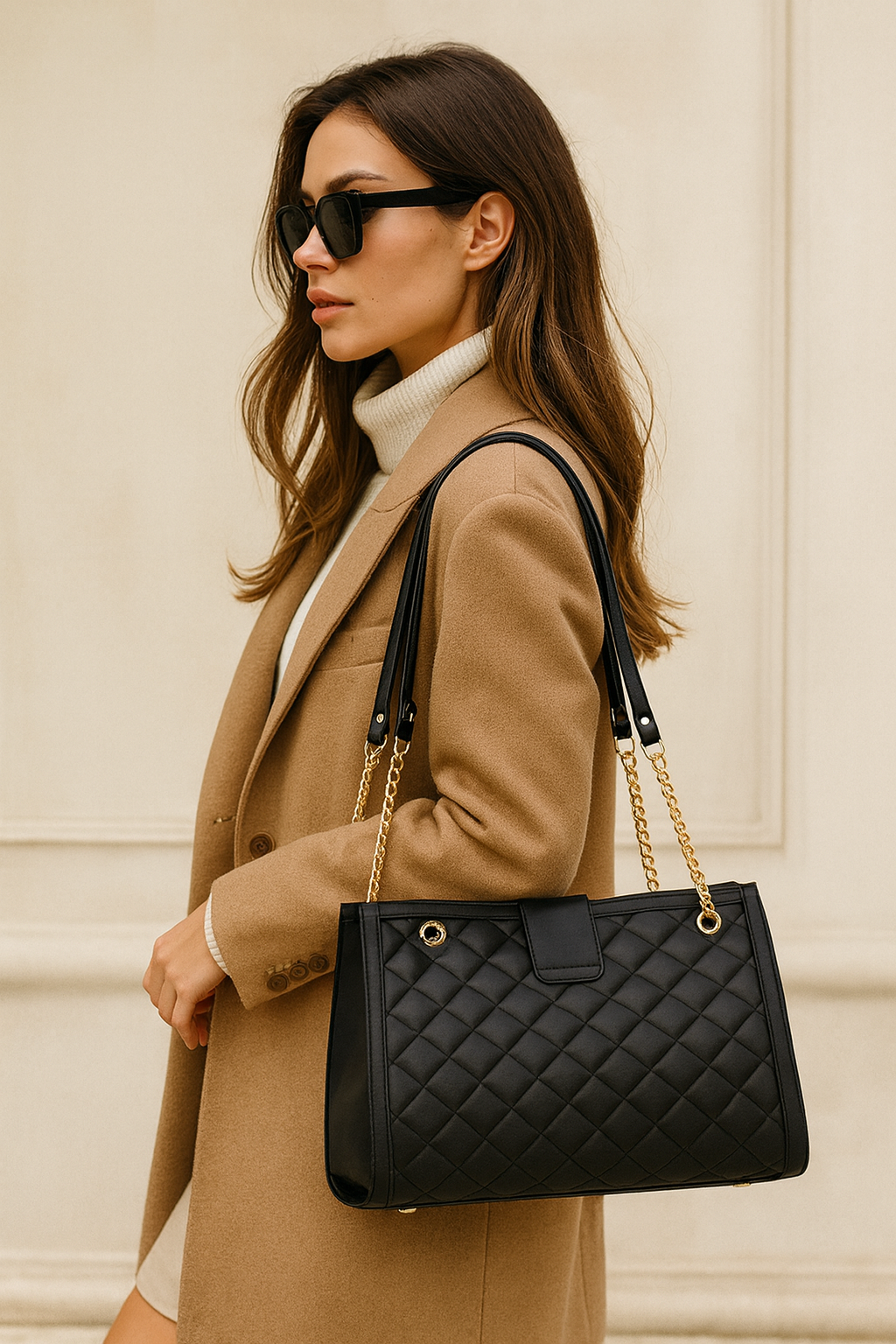 Unsere Tasche wird aus hochwertigem, umweltfreundlichem veganem Leder gefertigt. Dieses Material ist flexibel, robust, wasserabweisend und langlebig. Es bietet nicht nur Funktionalität, sondern auch ein stilvolles und edles Design.